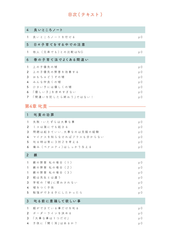 目次をご覧いただきたいのですが、まずは子育ての全体像を掴むこと。